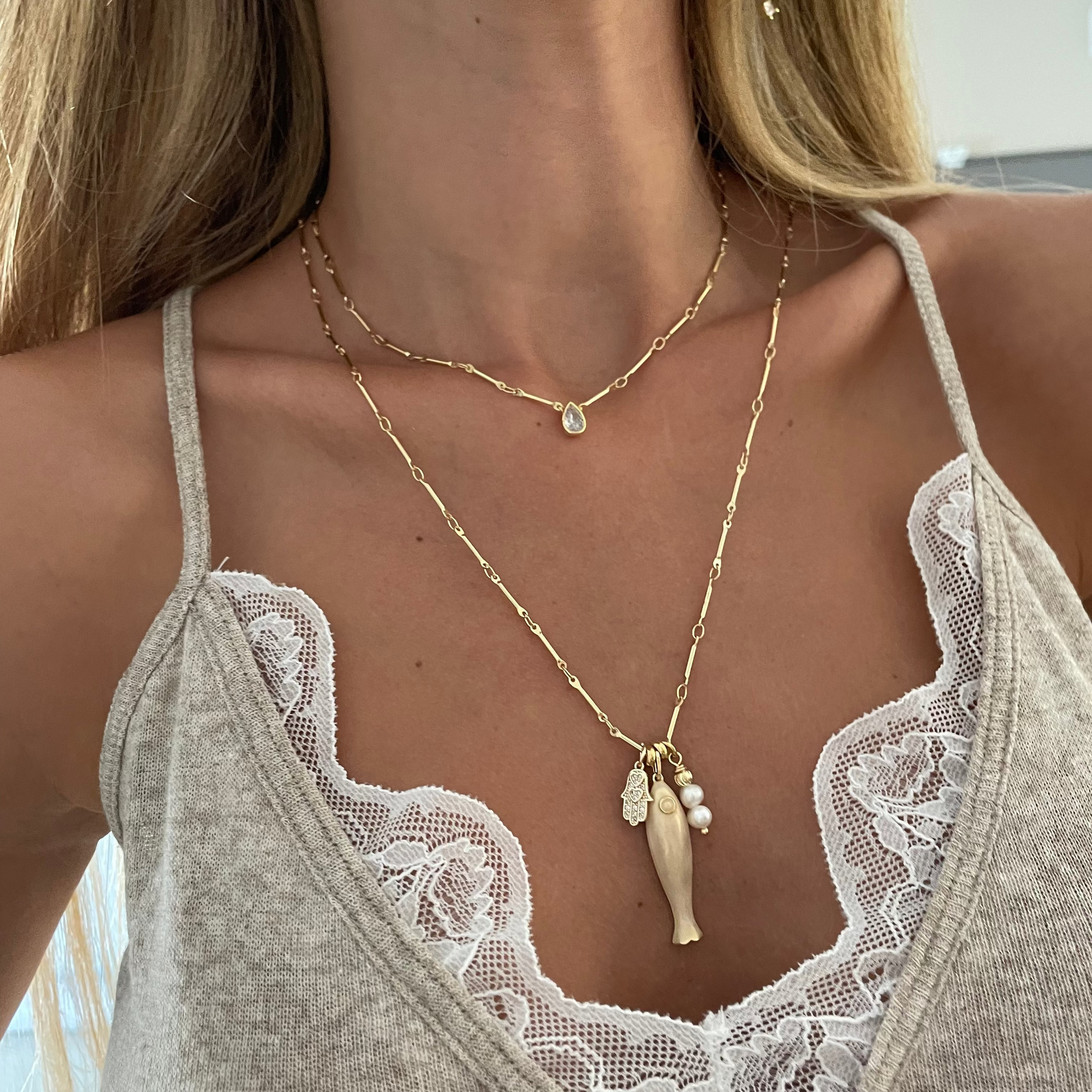 שרשרת זהב עדינה המורכבת ממקלות עדינים ותליון זירקון טיפה ( לא כולל שרשרת דג)