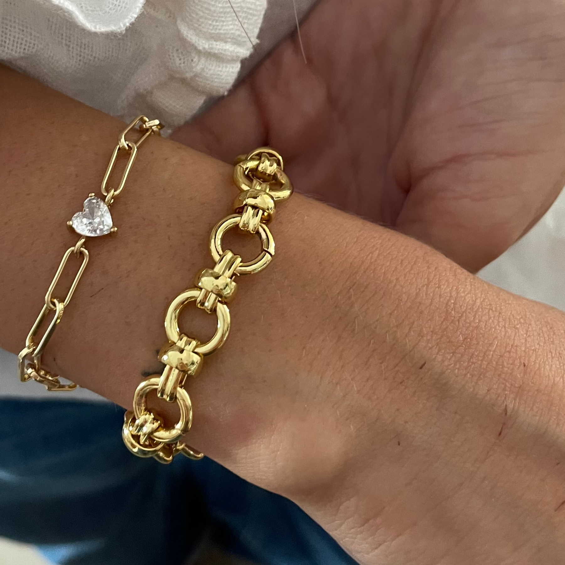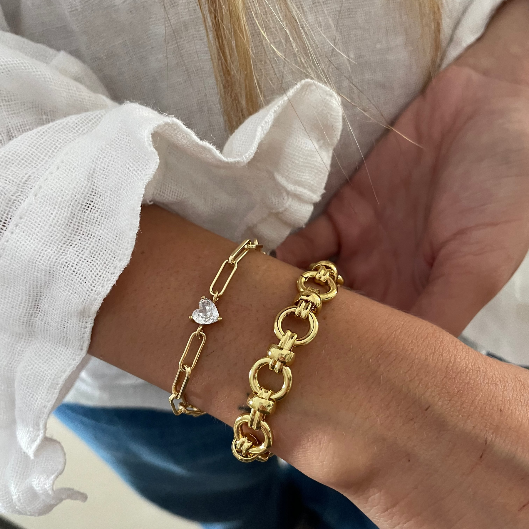 צמיד חוליות עגולות בגימור זהב 18K, צמיד קלאסי עם נוכחות מושלם לשילוב עם צמידים נוספים.