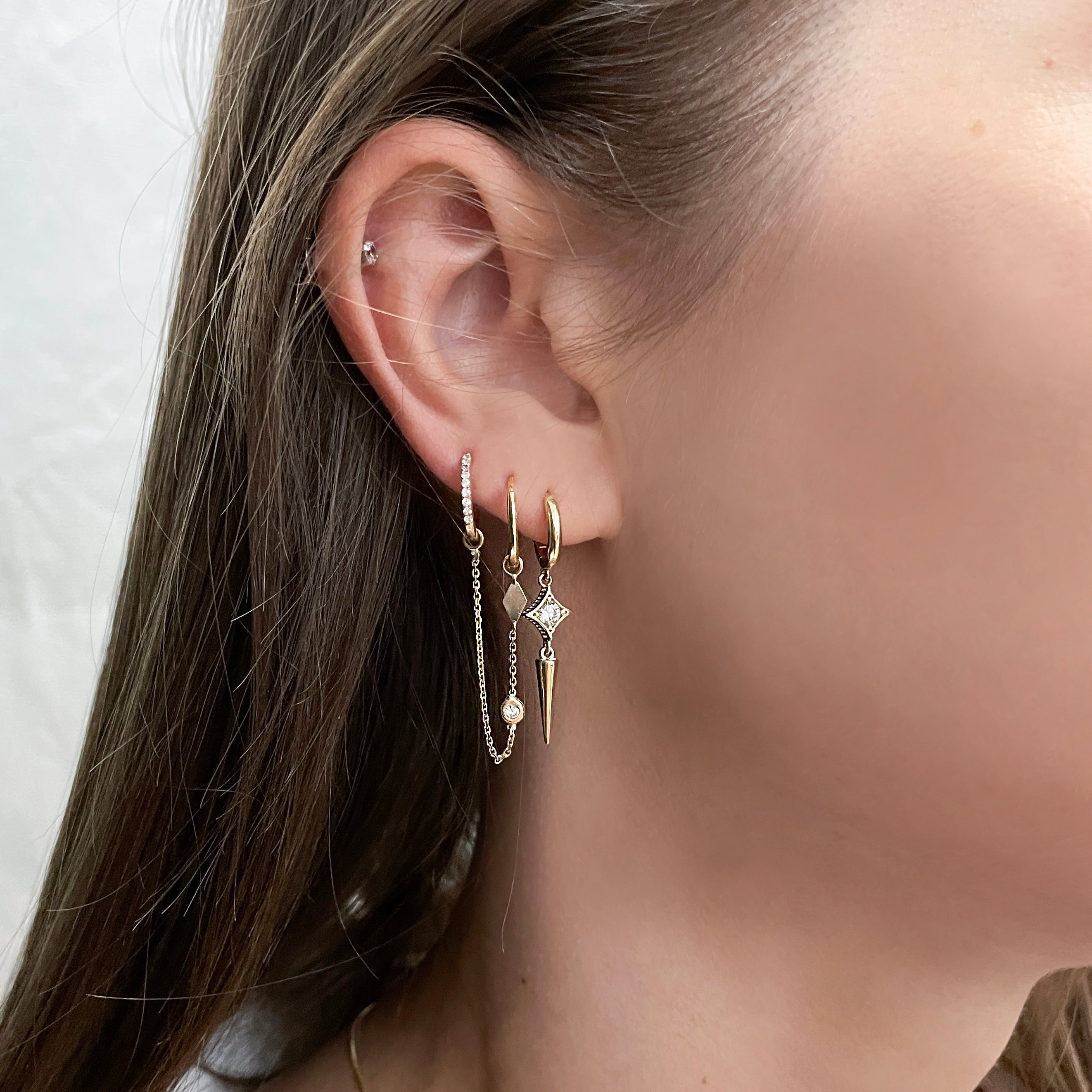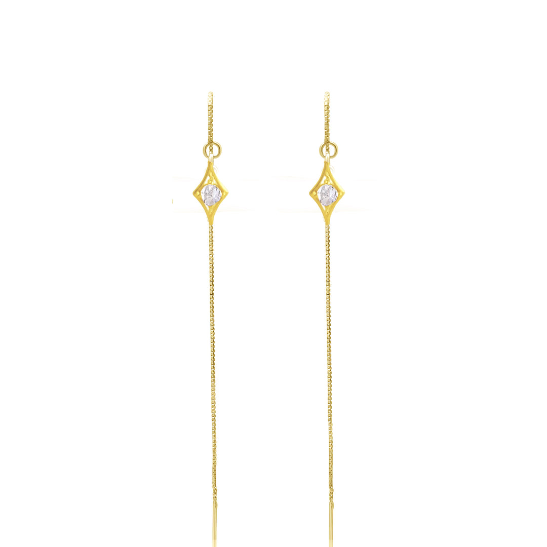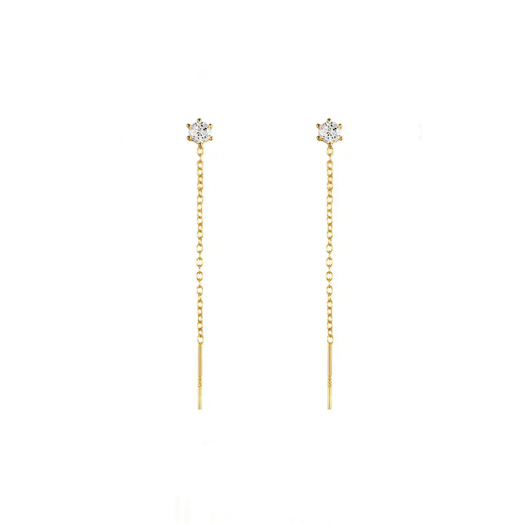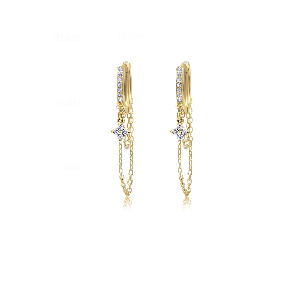 עגילי שרשרת וזירקון 14 קארט- קייה