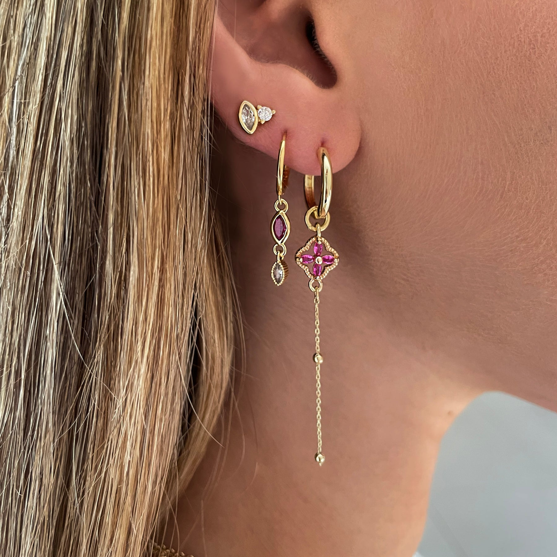 2. עגיל חישוק תליון טיפות זירקוני רובי ושקוף.