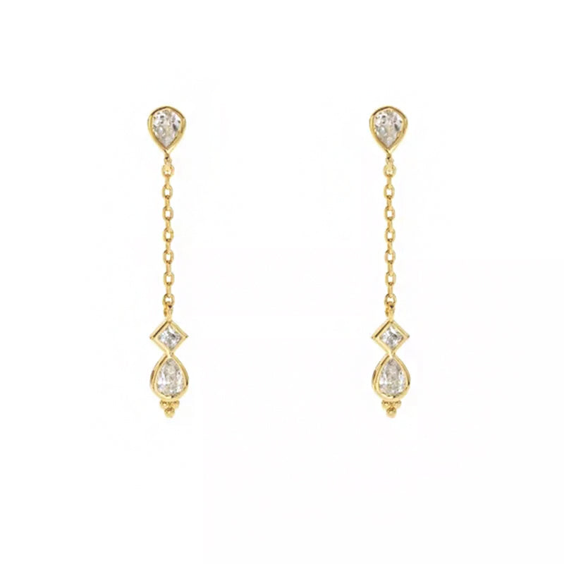 עגילי חישוק זהב תליון זירקונים -עלמה