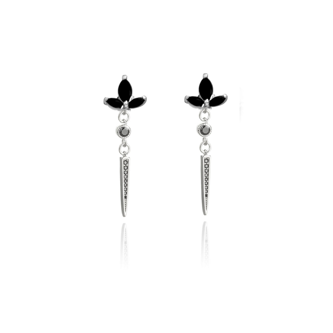 עגילי חישוק זהב תליון תלתן משובץ שחור - לורה