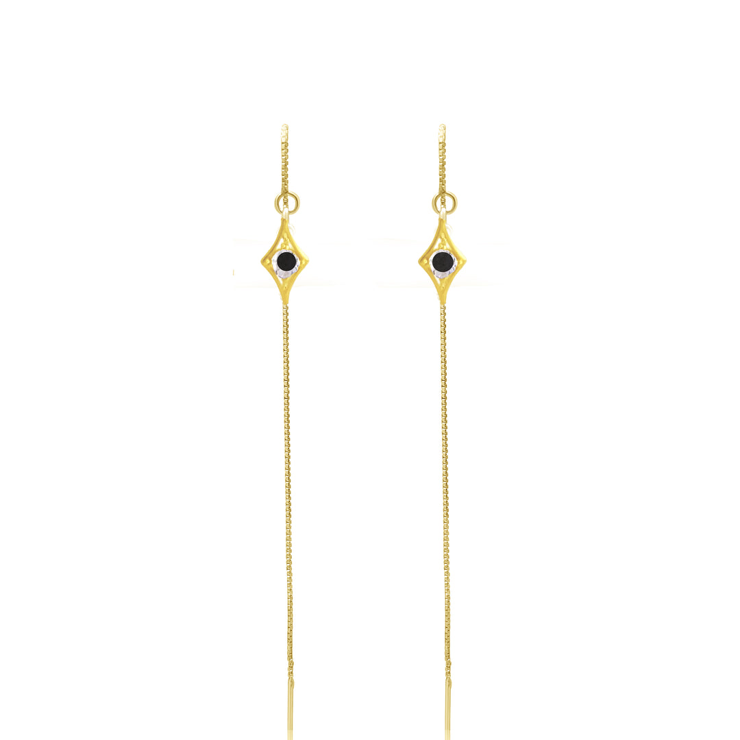 עגילי שרשרת זהב תליון מעויין זירקון שחור - אווה