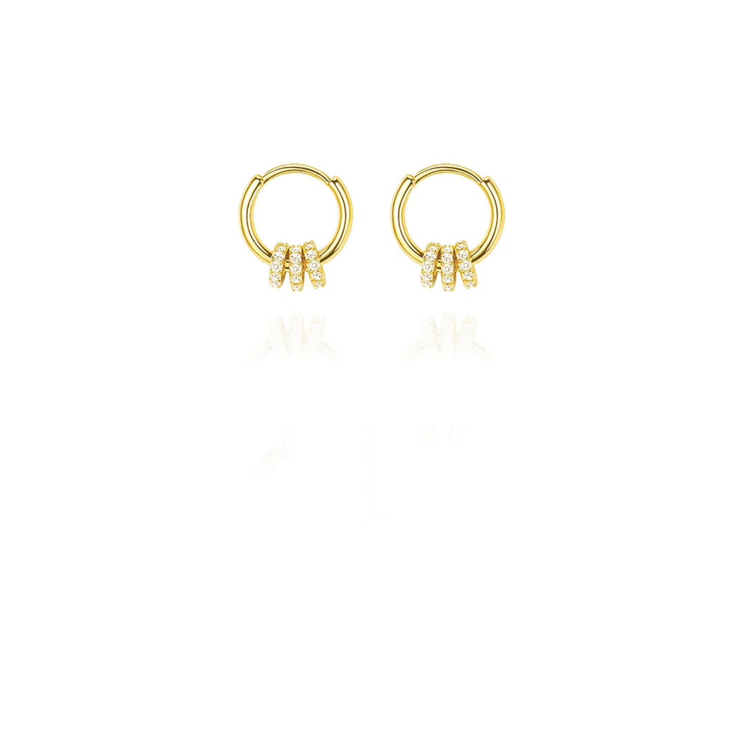 עגילי חישוק זהב משובצים - לקסי S