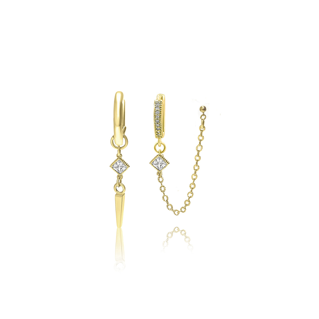 עגילי חישוק זהב עם שרשרת - חלי