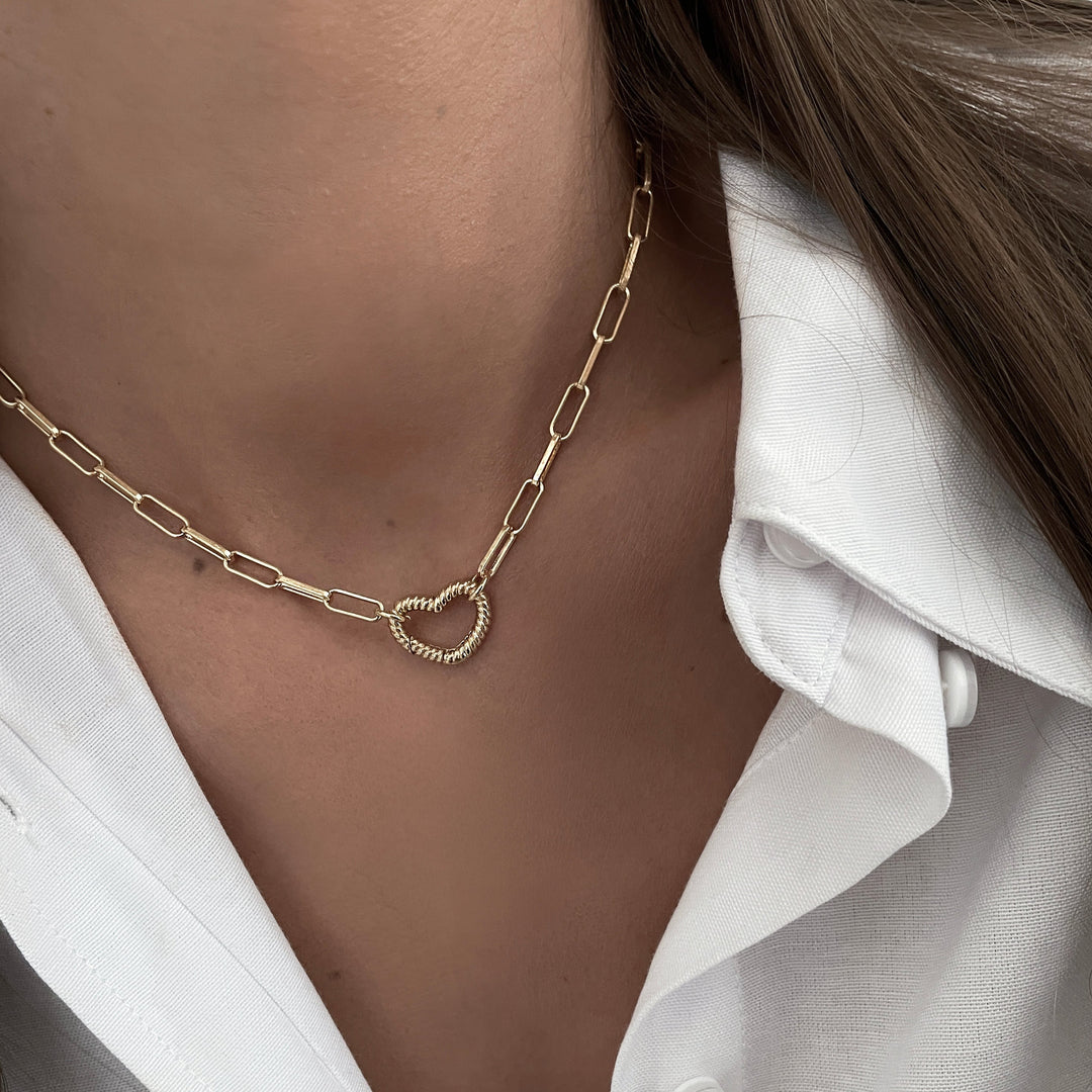 שרשרת חוליות זהב תליון סוגר לב -לימה