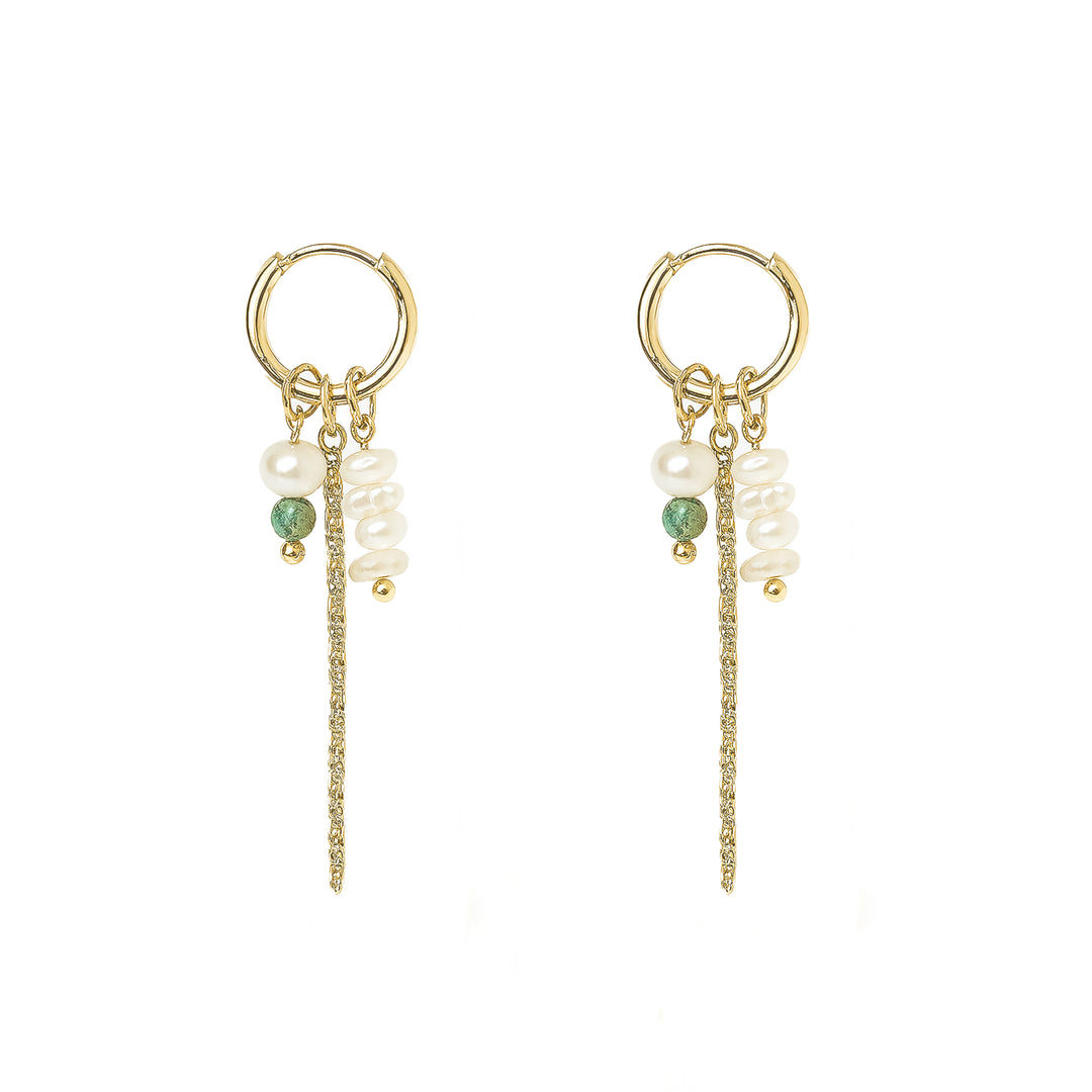 עגילי חישוק אבני חן טורקיז פנינים - ג'ייד