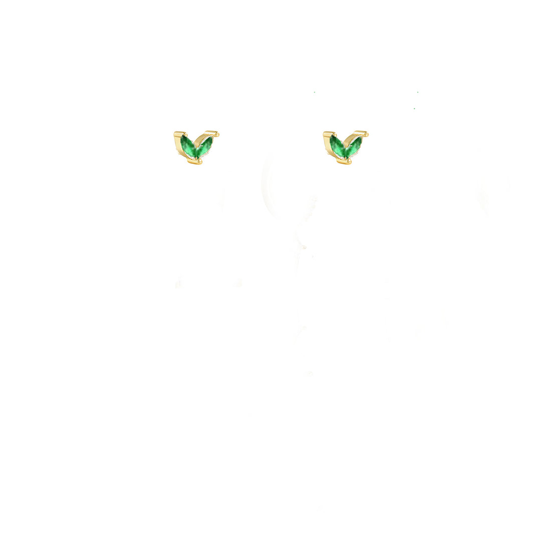 עגילים צמודים זהב זירקון ירוק - דרלן